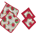 با سرویس پارچهای آشپزخانه 10 تکه طرح هندوانه، تجربهای جدید از آشپزی همراه با راحتی، ایمنی و زیبایی داشته باشید. این محصول با طراحی خاص و کیفیت بالا، همراهی ماندگار در آشپزخانه شما خواهد بود!