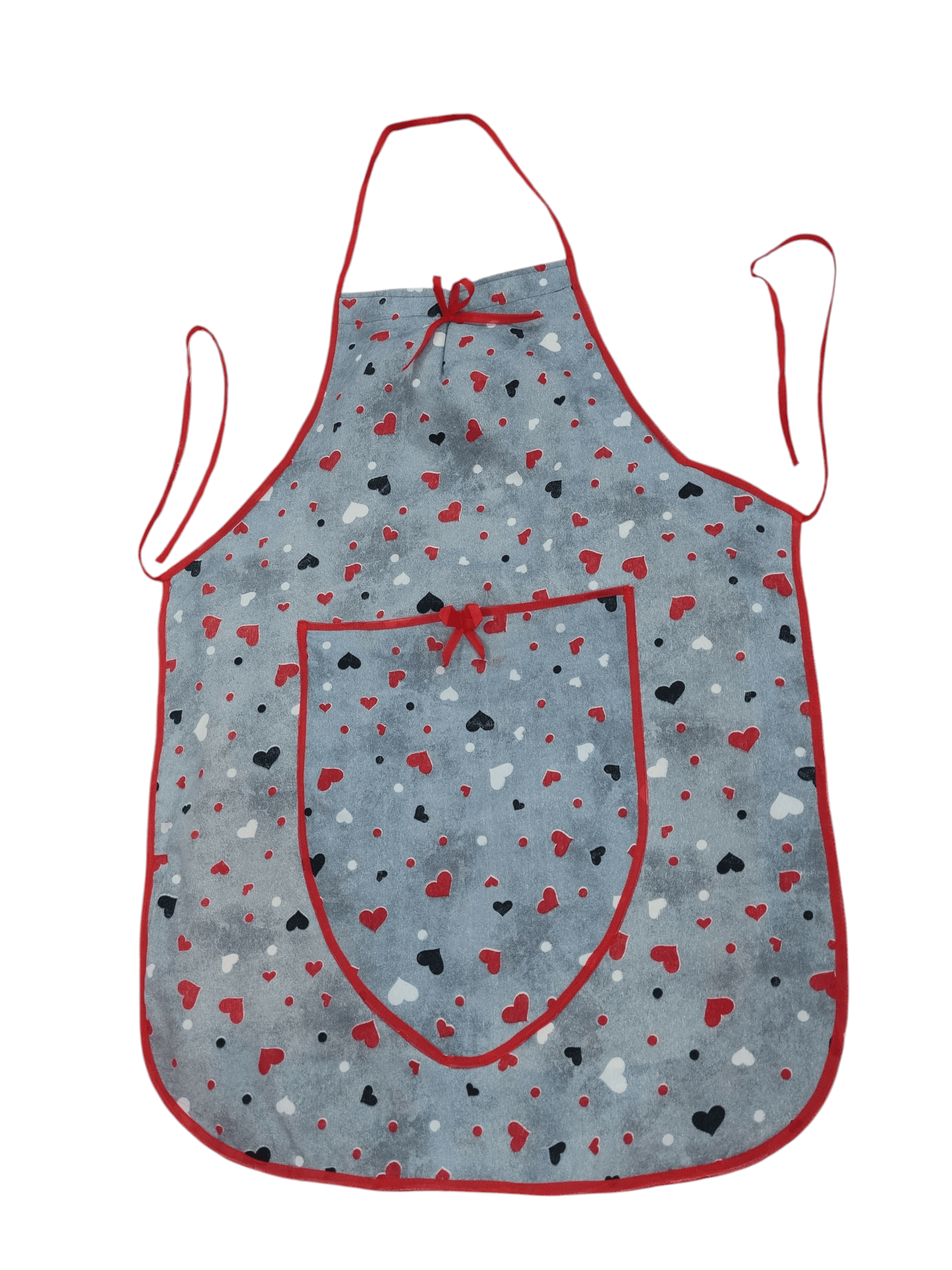 پیش‌بند آشپزی دولایه طرح قلب ❤️ با جنس نخی تترون و لایه داخلی نایلونی ضدآب 💦، دارای جیب بزرگ جلویی 📦، در ابعاد ۶۰×۸۰ سانتی‌متر. ترکیب رنگ طوسی، مشکی و قرمز 🖤❤️ – شیک، کاربردی و ایده‌آل برای آشپزی خانگی یا حرفه‌ای 👨‍🍳👩‍🍳