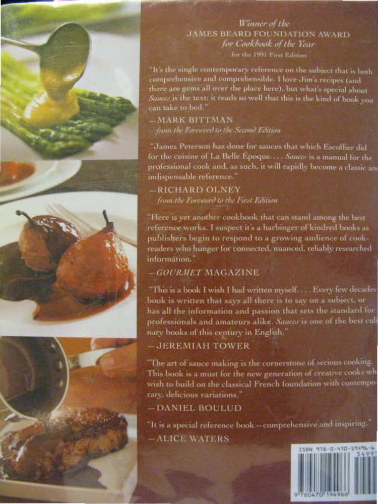 نوشته James Peterson یکی از منابع اصلی و برجسته در زمینه تهیه انواع سس‌های کلاسیک و مدرن محسوب می‌شود. این اثر که اولین بار در سال 1991 منتشر شد، تاکنون چندین بار به‌روزرسانی شده و در نسخه‌های جدید، تکنیک‌های معاصر و مواد اولیه مدرن نیز به آن افزوده شده است.